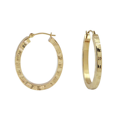 14K Yellow Gold DiamondCut Oval Hoop Earrings JCPenney